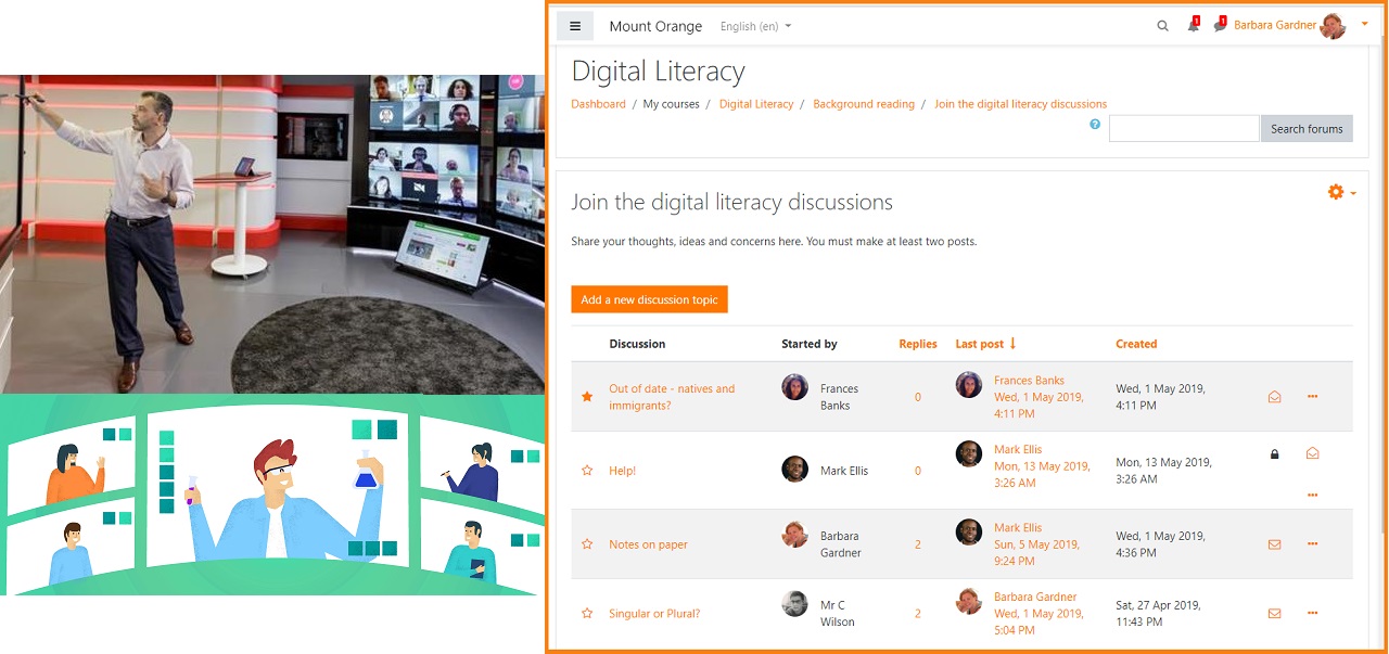 En este tipo de interacción, el maestro tiene el papel particularmente importante del moderador que guÃa el proceso de aprendizaje y apoya las actividades y discusiones grupales. Ellos se logra usando un LMS o Sistema de Gestión de Aprendizaje soportado en un hosting. Para ello nuestro software como servicio de aula virtual, E learning, plataforma LMS será una plataforma y herramienta colaborativa para su organización.
